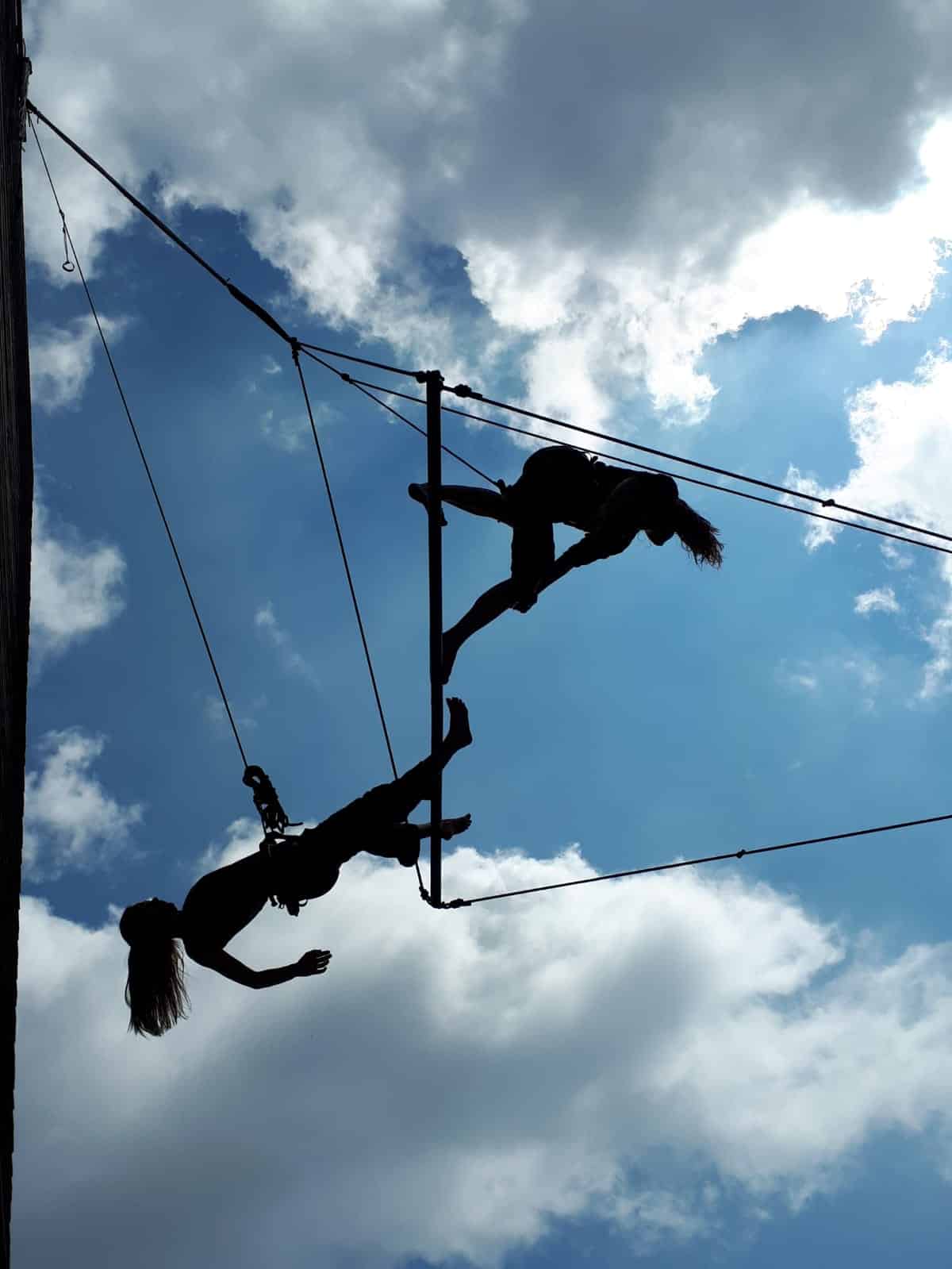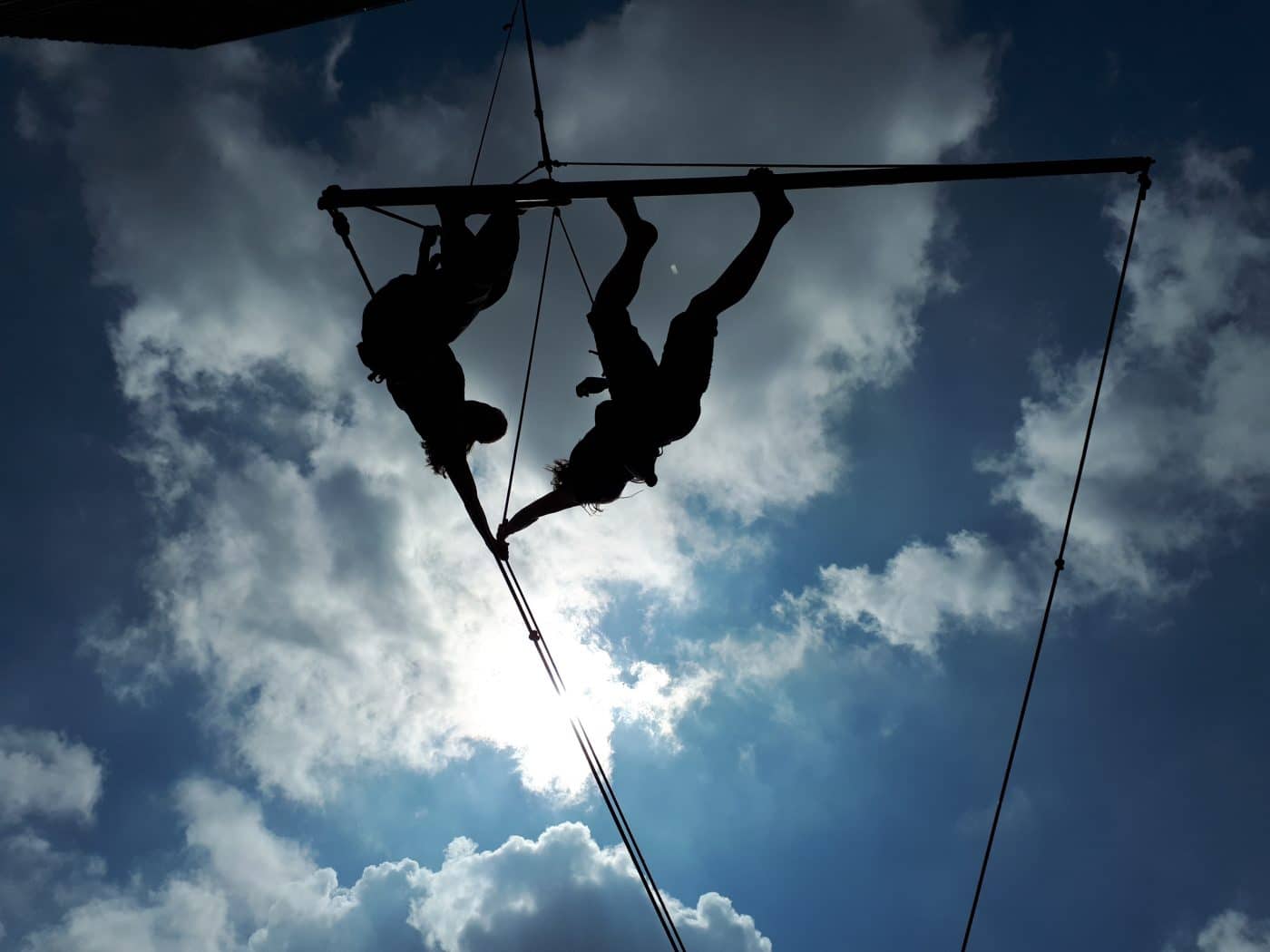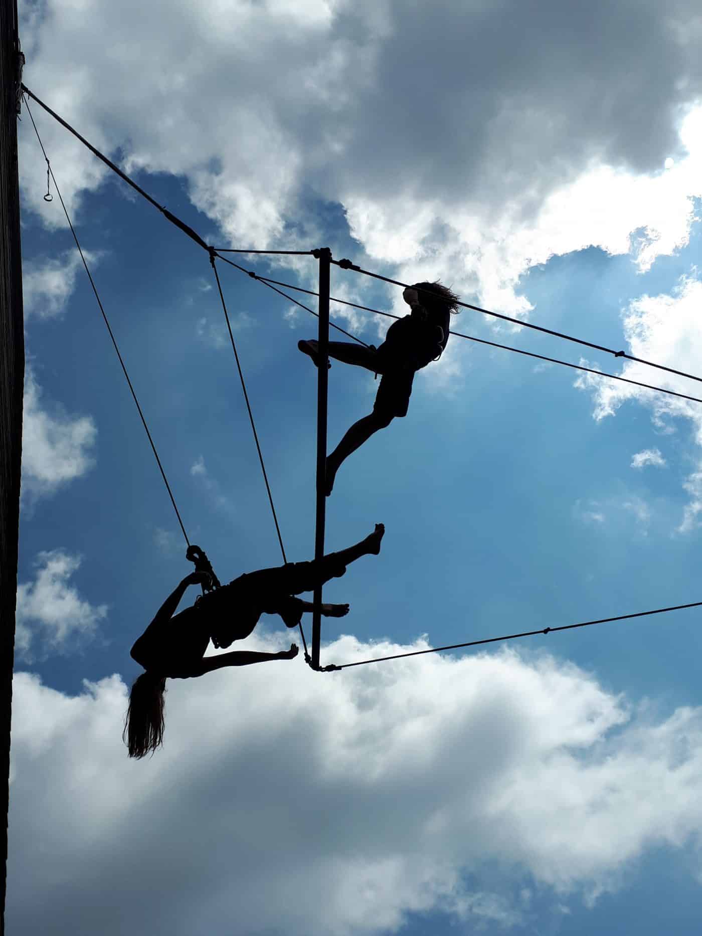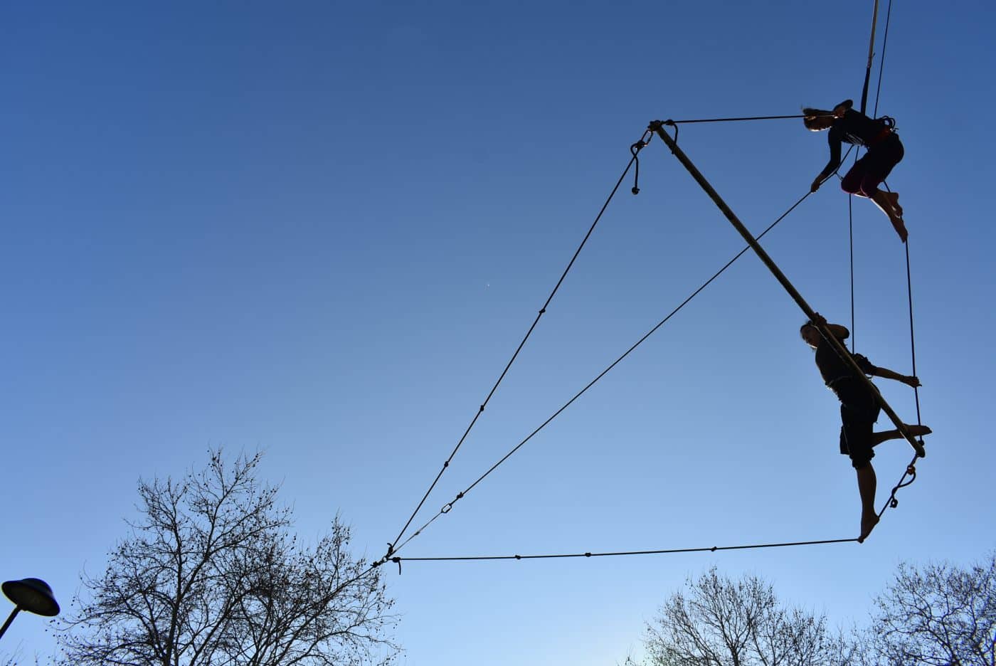 Une performance spectaculaire sur une façade d’immeuble. Sus- pendus entre ciel et béton, les danseurs dessinent une chorégraphie poétique en apesanteur, transformant l’architecture en véritable scène verticale.