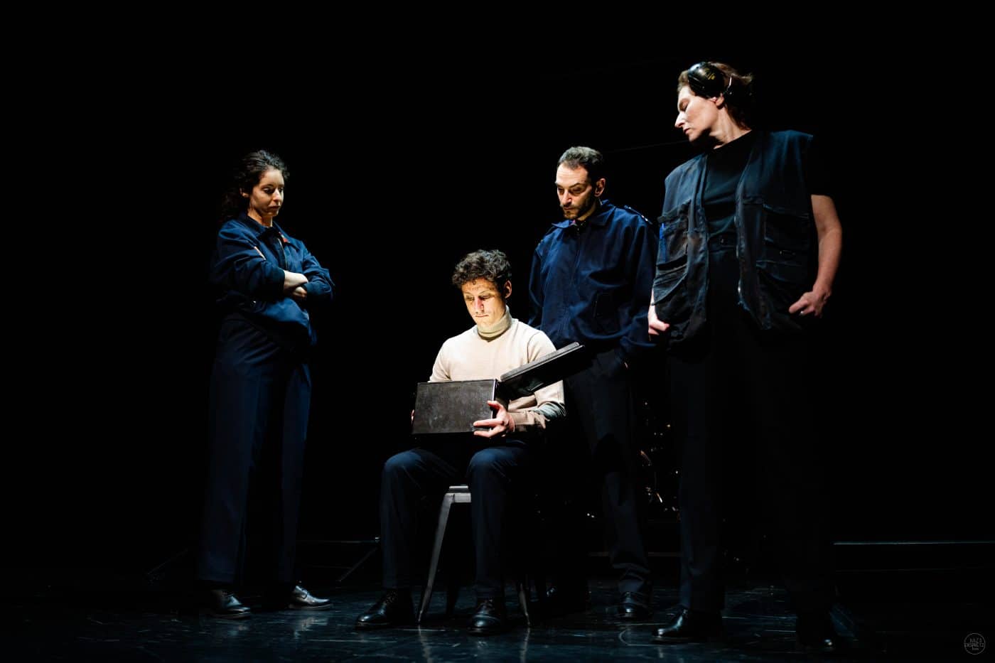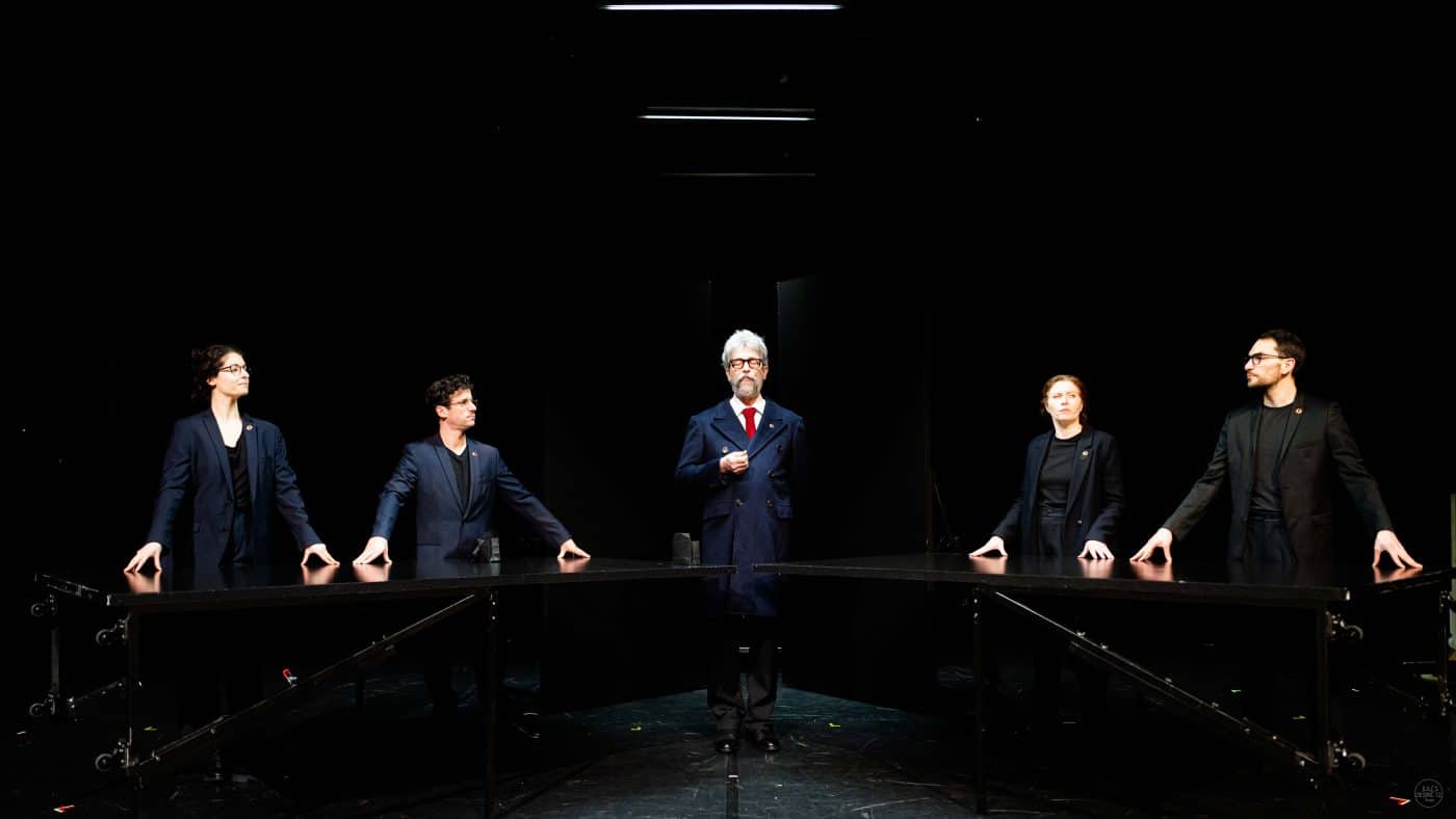 Une création de La Poursuite du Bleu / Écriture et mise en scène : Paul-Eloi Forget et Samuel Valensi / Avec : June Assal, Bertrand Saunier ou Michel Derville, Paul-Eloi Forget ou Thomas Rio, Valérie Moinet, Samuel Valensi, Mélanie Centenero ou Chloé Denis / Assistanat à la mise en scène : Alexandre Babey & Alice Helfing / Lumières : Geoffroy Adragna / Musique : Mélanie Centenero, Léo Elso, Lison Favard / Scénographie : Bastien Forestier & Sandrine Lamblin / Costumes : Carole Nobiron / Création sonore : Timothée Langlois